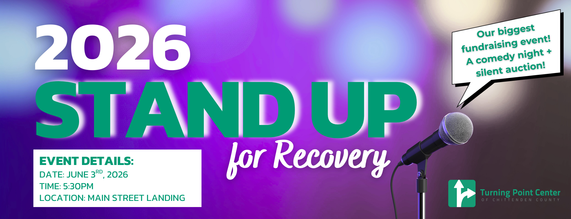 Join us for Stand Up for Recovery 2026 — an uplifting evening of comedy, connection, and community hosted by the Turning Point Center of Chittenden County. This annual fundraiser brings people together to celebrate the power of recovery, reduce stigma, and raise critical funds for recovery and mental health services.
